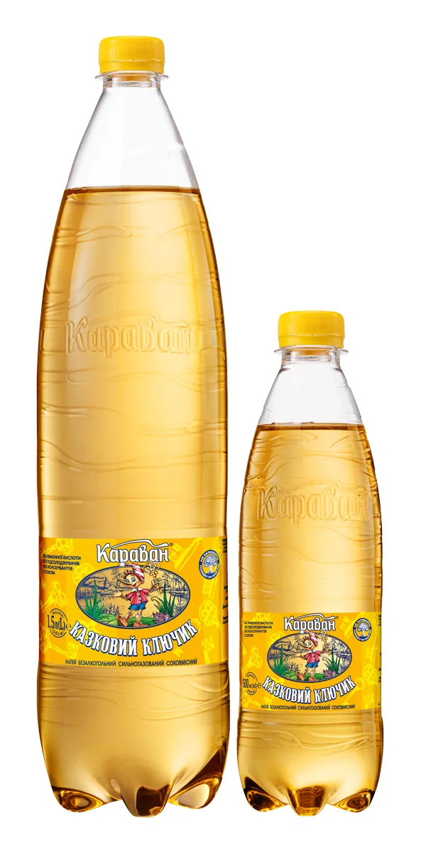 Напій безалкогольний сильногазований соковмісний «Казковий ключик» 1.5л, 0.5л